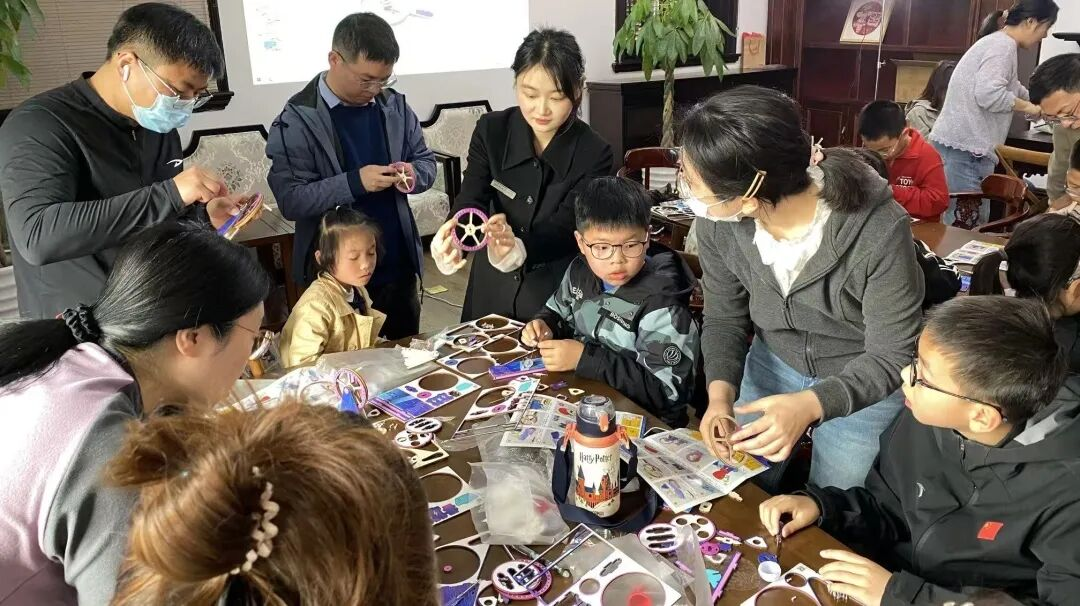 在非遗体验之外,南通市文化馆依托南通群英馆“全国科学家精神教育基地”优势,同步上线科学家精神传承系列科普社教活动。“追光少年・星火相传”体验营以力学为主题,带领孩子制作海盗船模型,在结构搭建中理解重心平衡原理,致敬科学探索精神。“小手探科学・童心向未来”趣味实验室聚焦航天科技,讲解卫星发展历程,指导孩子组装太阳能卫星模型,播种航天梦想。“江海少年・科学逐浪”传承季以电磁感应为核心,通过手摇发电机制作实践,让孩子直观感受能量转换奥秘,锤炼严谨求实的科学品格。此外,场馆还提供定时公益讲解服务,由省级宣讲员与志愿者带队,深度解读江海名人故事,让科普教育更具温度与深度。